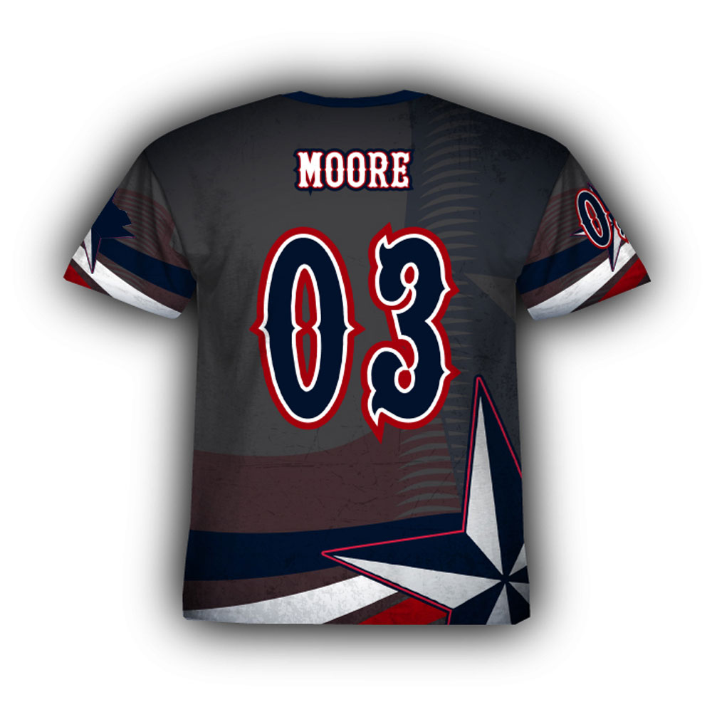 Full Dye Sublimated Jerseys are moisture management shirts, in a fabric that utilizes the advanced wicking power of true micro-fiber poly. To create your team jerseys, we use dye-sublimation technology: a printing process that puts the ink directly into the fibers of the shirt. You get a team shirt that won't fade, with bold logo graphics - without worrying about having a big, sweaty plastic print on the front. Our exclusive team jerseys shirts come in your team colors, with your team name and details customized into one of our many design options.